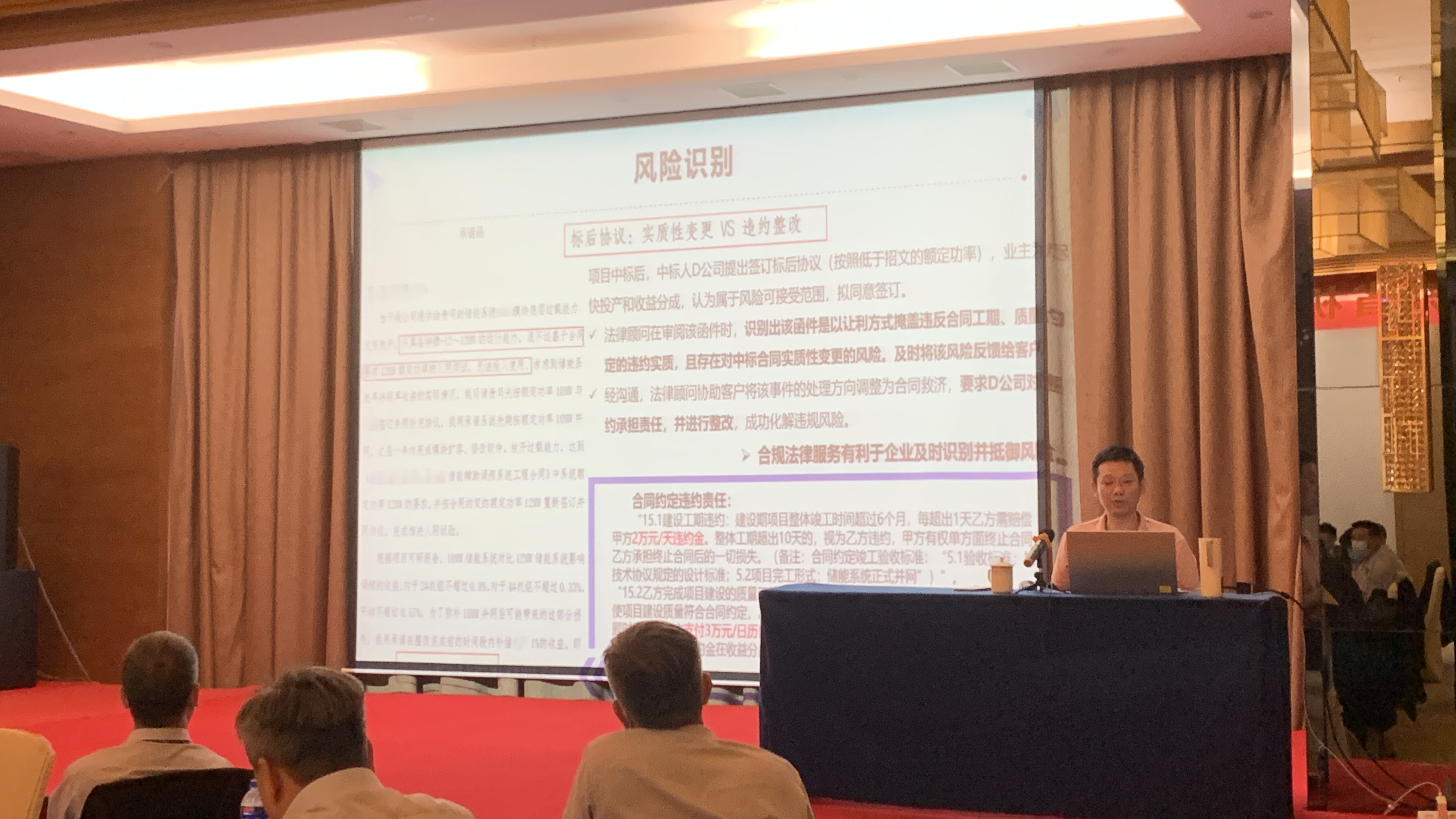 此次培训邀请招标中心常年法律顾问—北京市盈科(广州)律师事务所高级合伙人刘艺律师授课。刘艺律师是广东省公共资源交易联合会法律咨询与调解委员会主任,具有深厚的法律理论知识和丰富的行业实践经验。他以合规管理指引的出台、合规管理关键环节为切入点,通过案例分析的方式,深入浅出地对企业的制度制定、风险识别和风险应对等合规管理各个层面进行了详细解读。